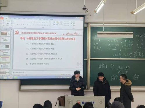 活动当日,督导组成员早早抵达教学楼,在课前仔细检查教师到岗、员工出勤以及教学设备运行状况。随着上课铃声响起,督导组分别走进不同教室,听取《毛泽东思想和中国特色社会主义理论体系概论》和《中国近现代史纲要》课程授课情况。从整体检查情况来看,新学期首日思政课教学秩序井然,教师教学准备充分,员工学习状态良好。