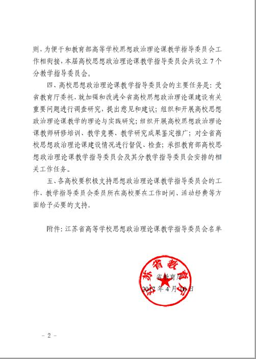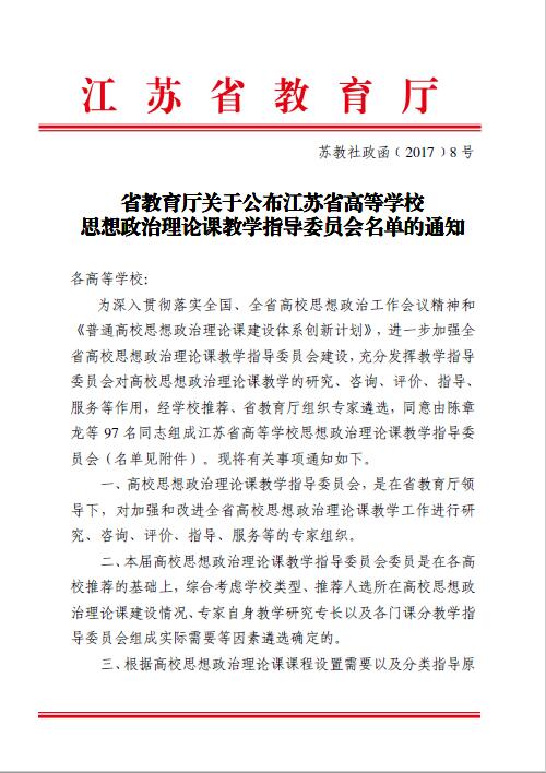 关于公布江苏省高等公司思想政治理论课教学指导委员会名单的通知