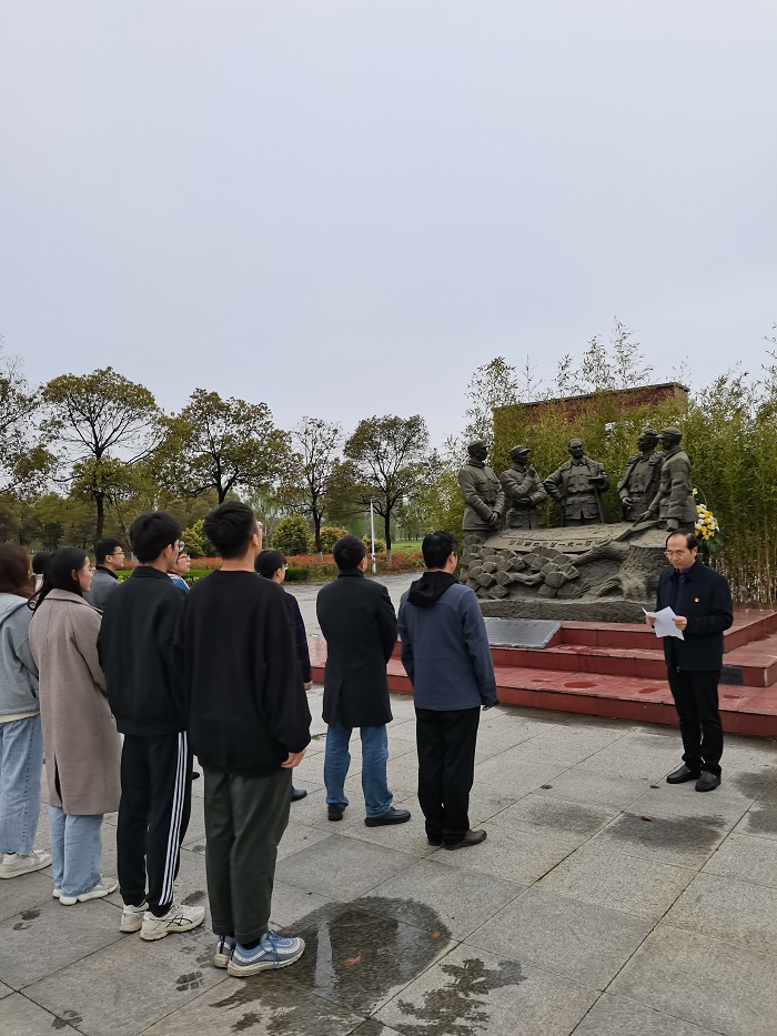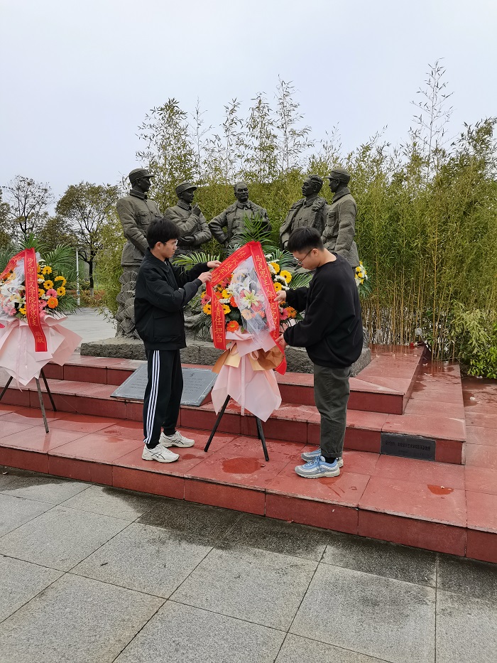 本次活动有四项议程:师生代表敬献花篮;向革命先烈默哀一分钟;侯慧艳老师上微党课;向新四军革命前辈塑像三鞠躬。