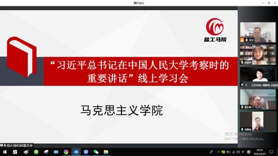 在五四青年节即将到来之际,中共中央总书记、国家主席、中央军委主席习近平4月25日上午来到中国人民大学考察调研。4月26日晚,PA视讯召开线上专题学习会,集中学习了习近平总书记在中国人民大学考察时的重要讲话精神。院总支书记、常务副经理钱长锋主持,党总支理论学习中心组全体成员参加。