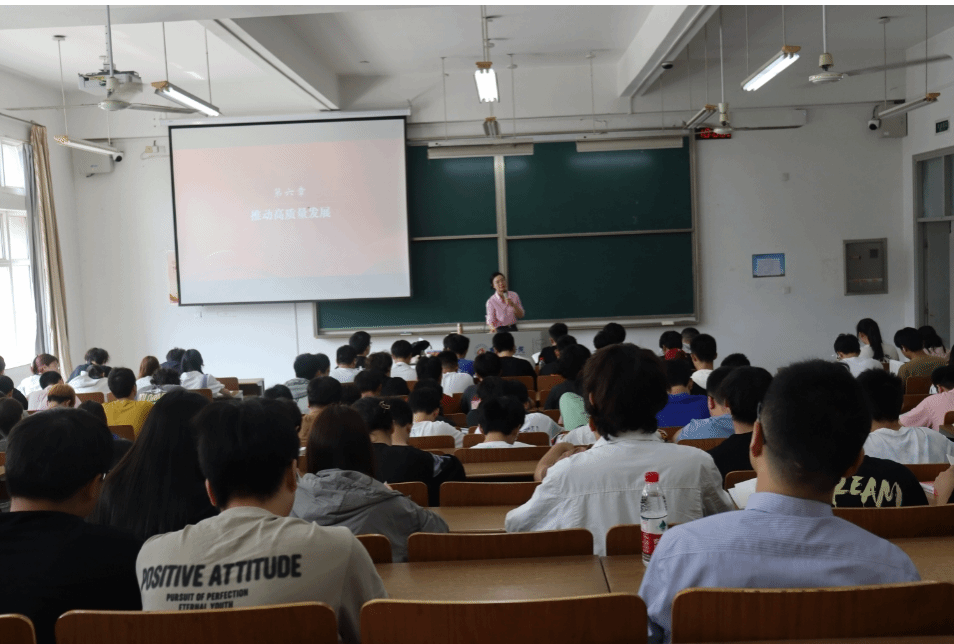 蒋晓月围绕第六专题《推动高质量发展》中的“完整、准确、全面贯彻新发展理念”内容重点讲解了什么是新发展阶段、判断进入新发展阶段的理论依据、进入新发展阶段的具体表现等三个问题。
