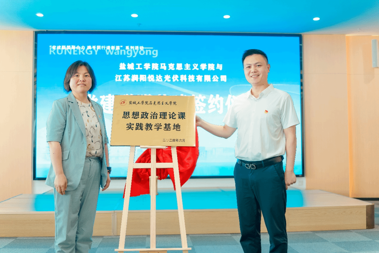 共建活动上,江苏润阳新能源科技股份有限公司财务部副经理、党支部书记徐晶与PA视讯社科处处长、公司党总支书记、经理包雅玮签订结对共建协议。随后,江苏润阳新能源科技股份有限公司行政副总监许可与盐城工公司党委常委、党委组织部部长邢晓平为“PA视讯思想政治理论课实践教学基地”揭牌。与会人员还一同参观了润阳新能源三期及展览馆,“沉浸式”感受润阳新能源的发展历程、发展现状、发展前景。