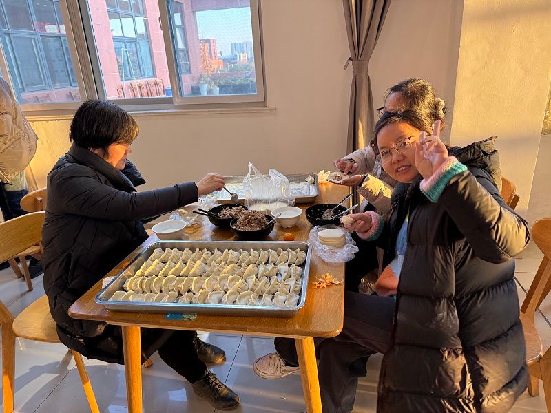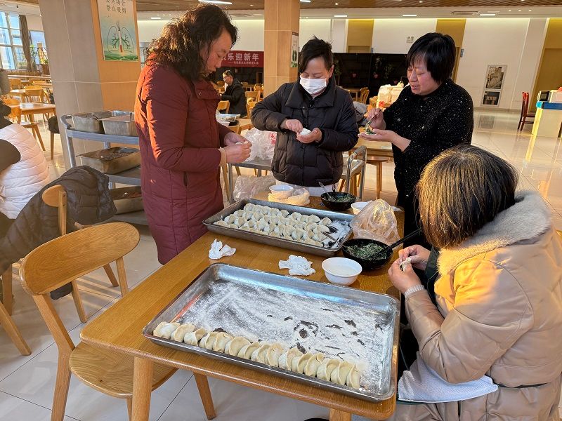 胡凌霞感谢退休老同志对于公司各项工作的关心和支持,陪同他们一起参观了公司陈列室,向老同志们表示诚挚的问候和新年的祝福。活动现场充满欢乐的氛围,工作人员提前准备好了饺皮和馅料,教职工们围坐在桌旁,一边交流包水饺的技巧,一边分享着各自的新年愿望和对来年的期待,现场洋溢着欢声笑语。随着一锅锅热气腾腾的水饺出锅,大家共同品尝了自己亲手包制的水饺,感受着劳动成果带来的满足和快乐,增进公司的集体凝聚力,为新的一年注入了活力和希望。
