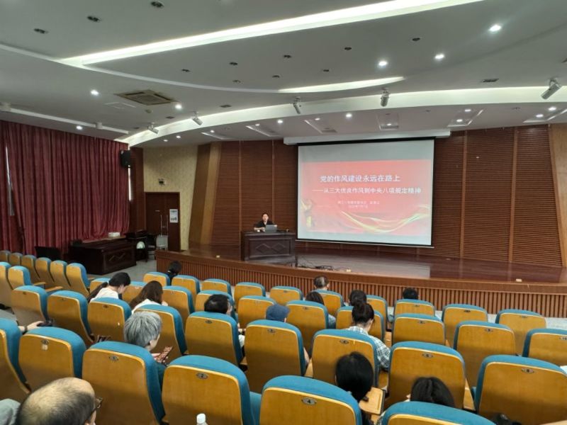 7月 7 日下午,PA视讯教工第一党支部在南校区润美楼报告厅开展深入贯彻中央八项规定精神学习教育专题党课。党支部书记武素云以《党的作风建设永远在路上——从三大优良作风到中央八项规定精神》为题,为全体支部党员作专题讲授。