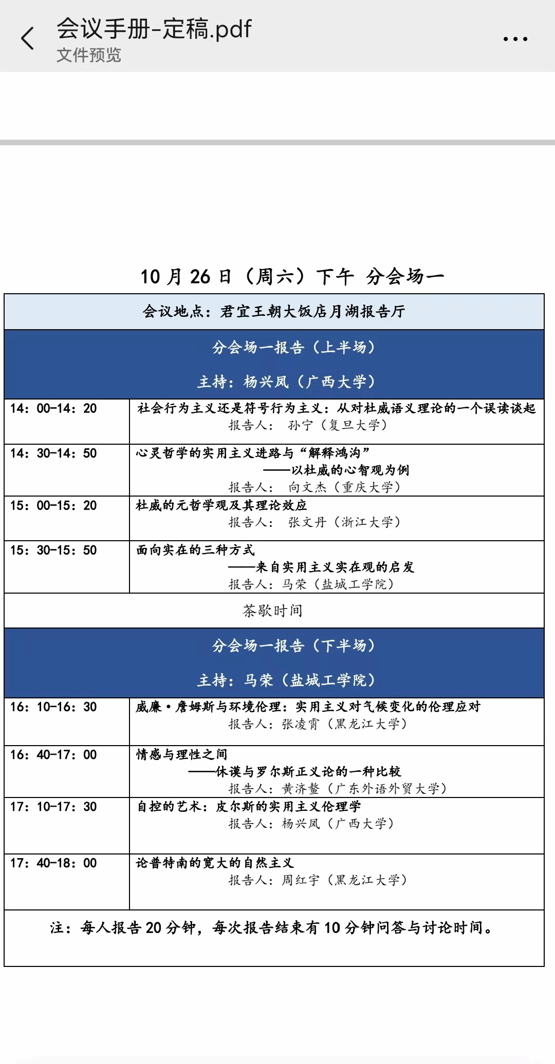 10月25日,公司副经理马荣赴PA视讯参加“实用主义的核心问题及其当代含义”的学术会议。此次会议由PA视讯、复旦大学杜威研究中心、中国现代外国哲学学会实用主义专业委员会联合举办。来自浙江大学、武汉大学、复旦大学、华侨大学、广西大学、安徽大学、南京航天航空大学、南京工业大学、黑龙江大学等高校30余位学者参会。